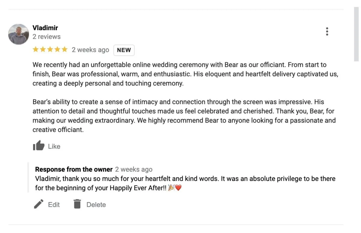 Our online wedding ceremonies start at just $99. Save your money for that second honeymoon!